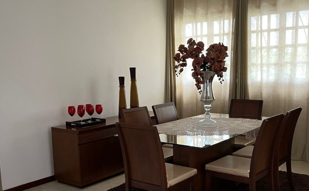 Essa casa é dividida em sala de estar, jantar e TV; 3 quartos, sendo 1 suíte; banheiro social, cozinha e lavanderia.